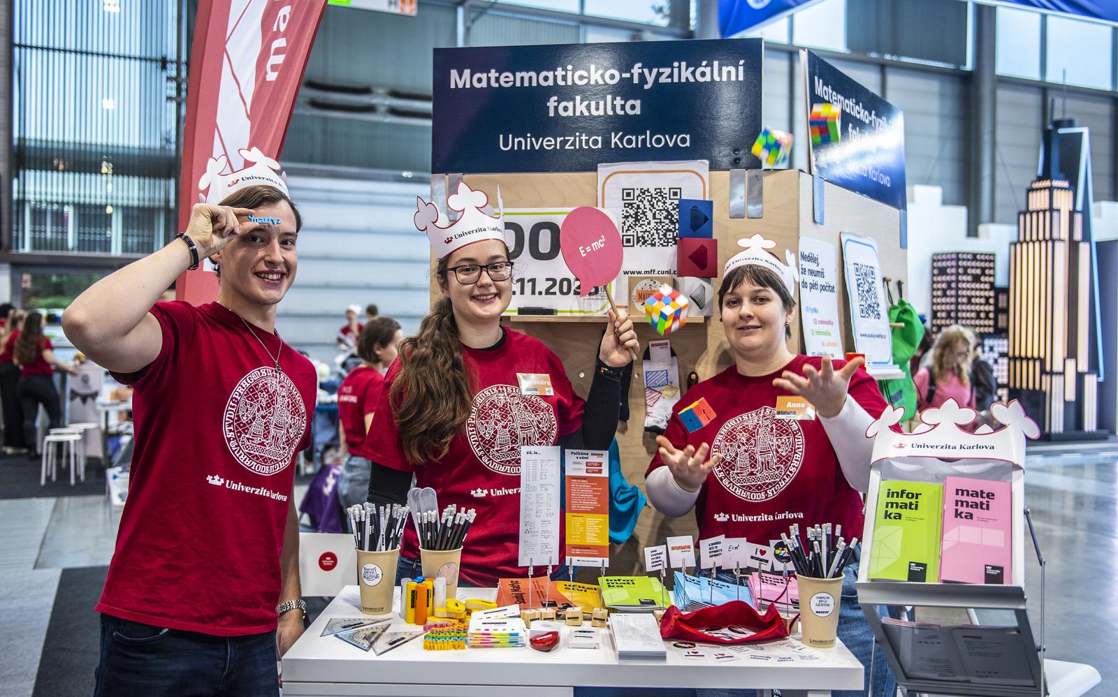 Baví vás matematika, informatika, fyzika nebo chcete učit? Přijďte se podívat ke stánku Matfyzu, kde vás kolegové seznámí s možnostmi studia a potrápí vaše mozkové buňky hlavolamy.